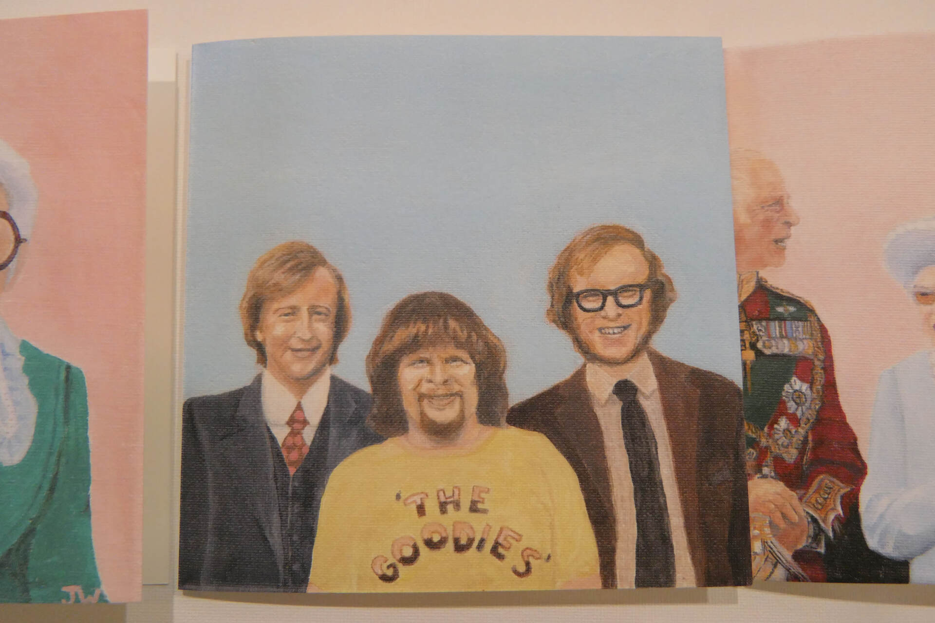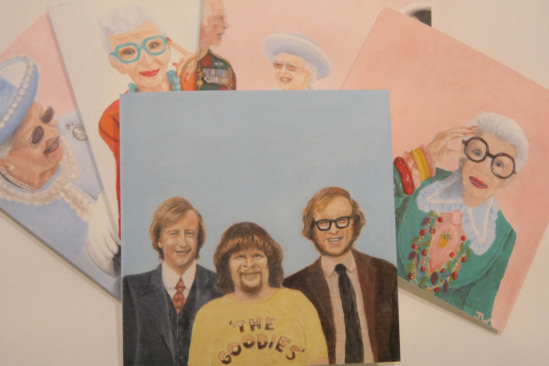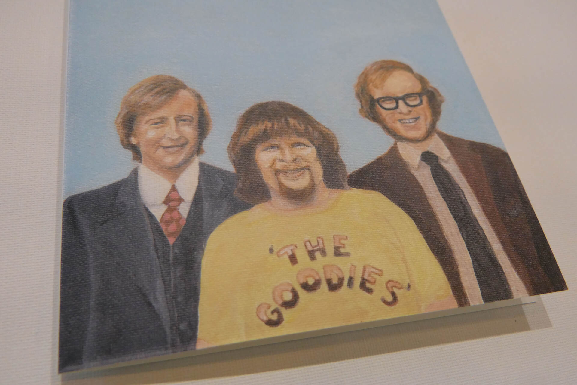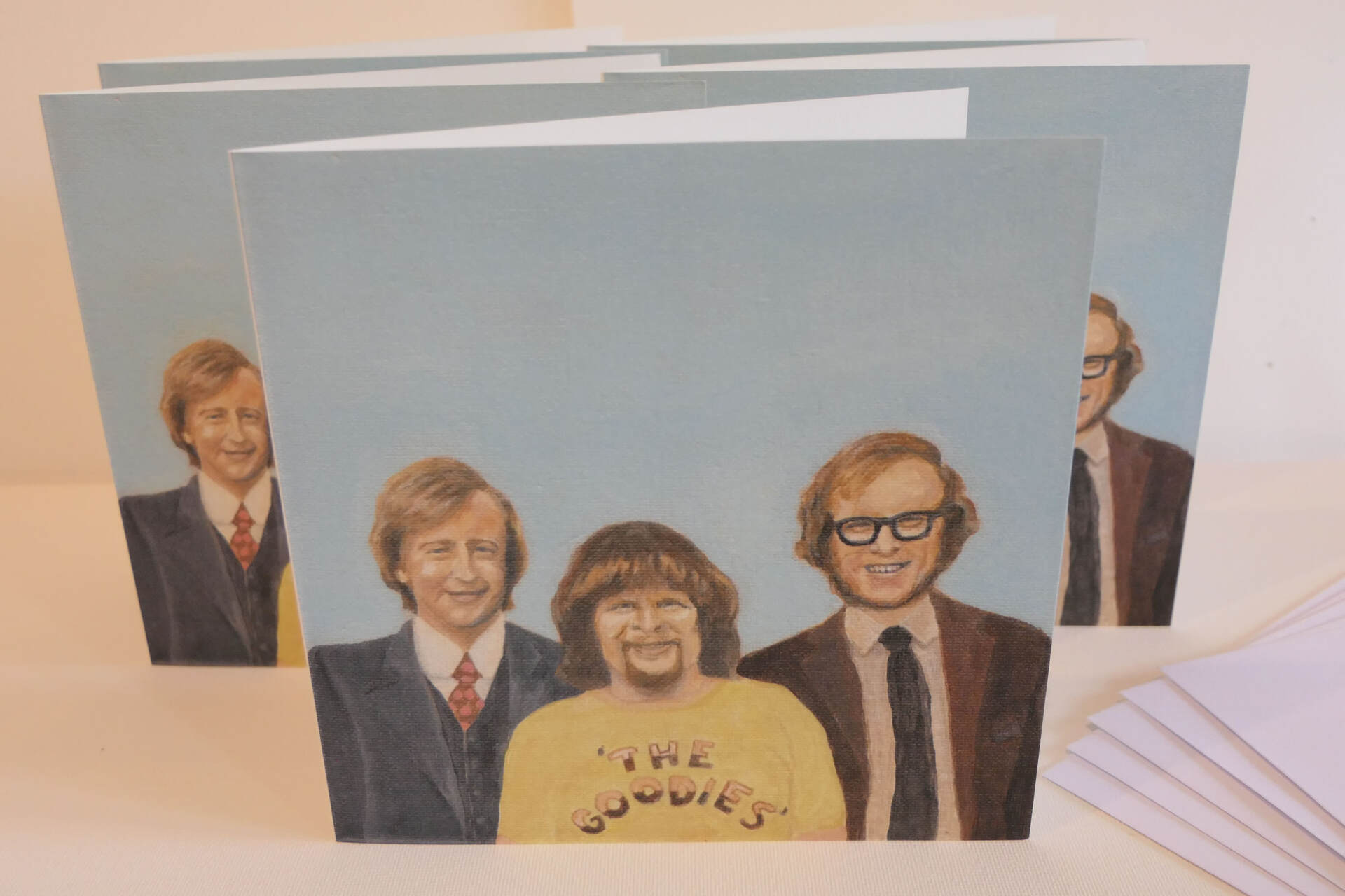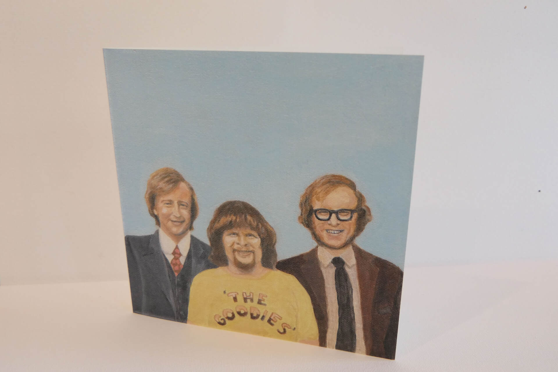 The card design was based on an original painting of The Goodies by Jo Wright painted in 2022.