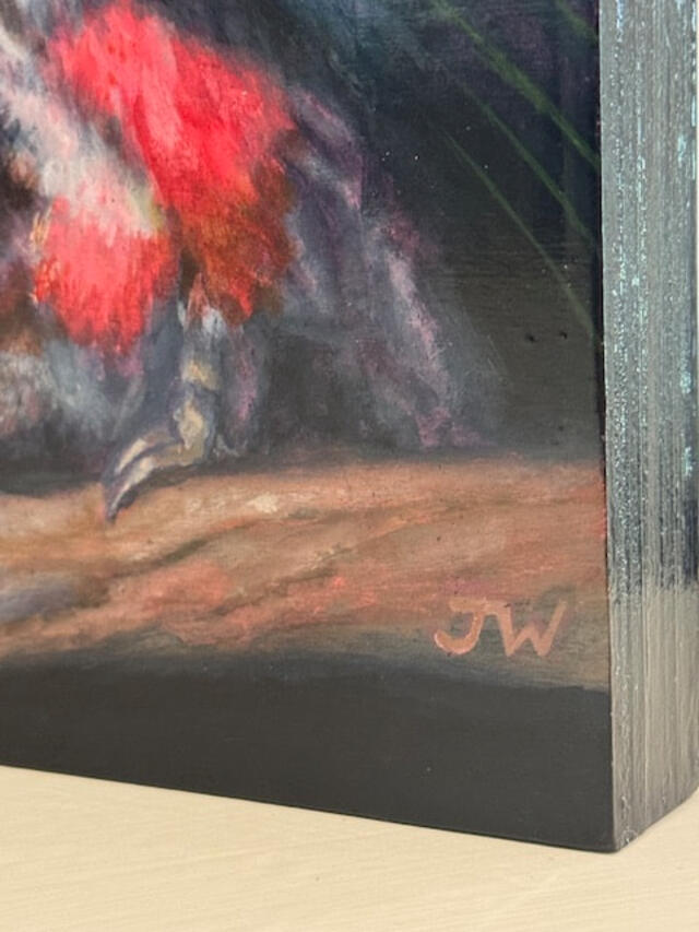 Acrylic on pine wood panel with gloss varnish